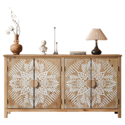60″Wood Accent Cabinet with 4 Doors, Brown and antique white Modern Pantry Cabinet, Wood Buffet Cabinet, Media Cabinet, Console Cabinet, Cabinet for Entryway, Living Room, Bedroom, Dining Room