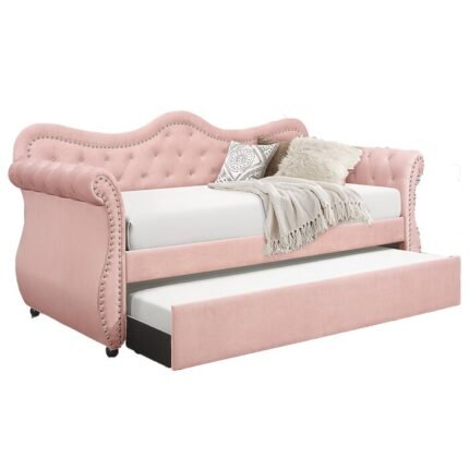 Abby Modern Style Upholstered Velvet Wood Daybed with Trundle in Pink