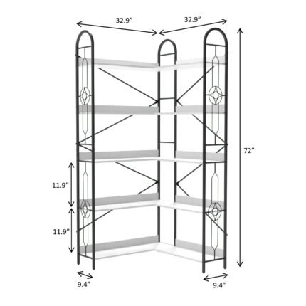 5 Tier Corner Bookshelf, Modern Corner Bookcase, Large Open Shelf Bookcase,Display, Shelving, Tall Bookshelves Storage Display Rack for Bedroom, Living Room and Home Office, White