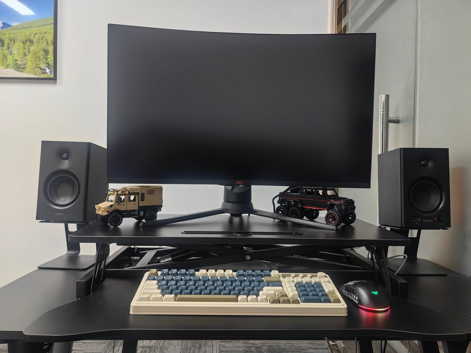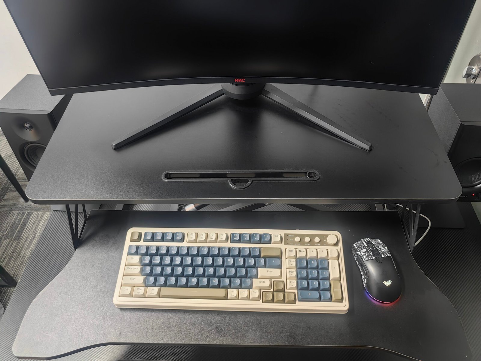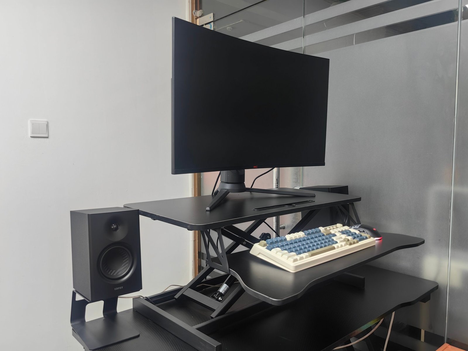 • 【Spacious Work Area】The top surface measures 31.5” x 15.7” providing plenty of space for single monitor, dual monitor, and laptop + computer monitor setups. Raises up to 19.8 inches and lowers down to 4.3 inches making this ideal for you no matter your height.