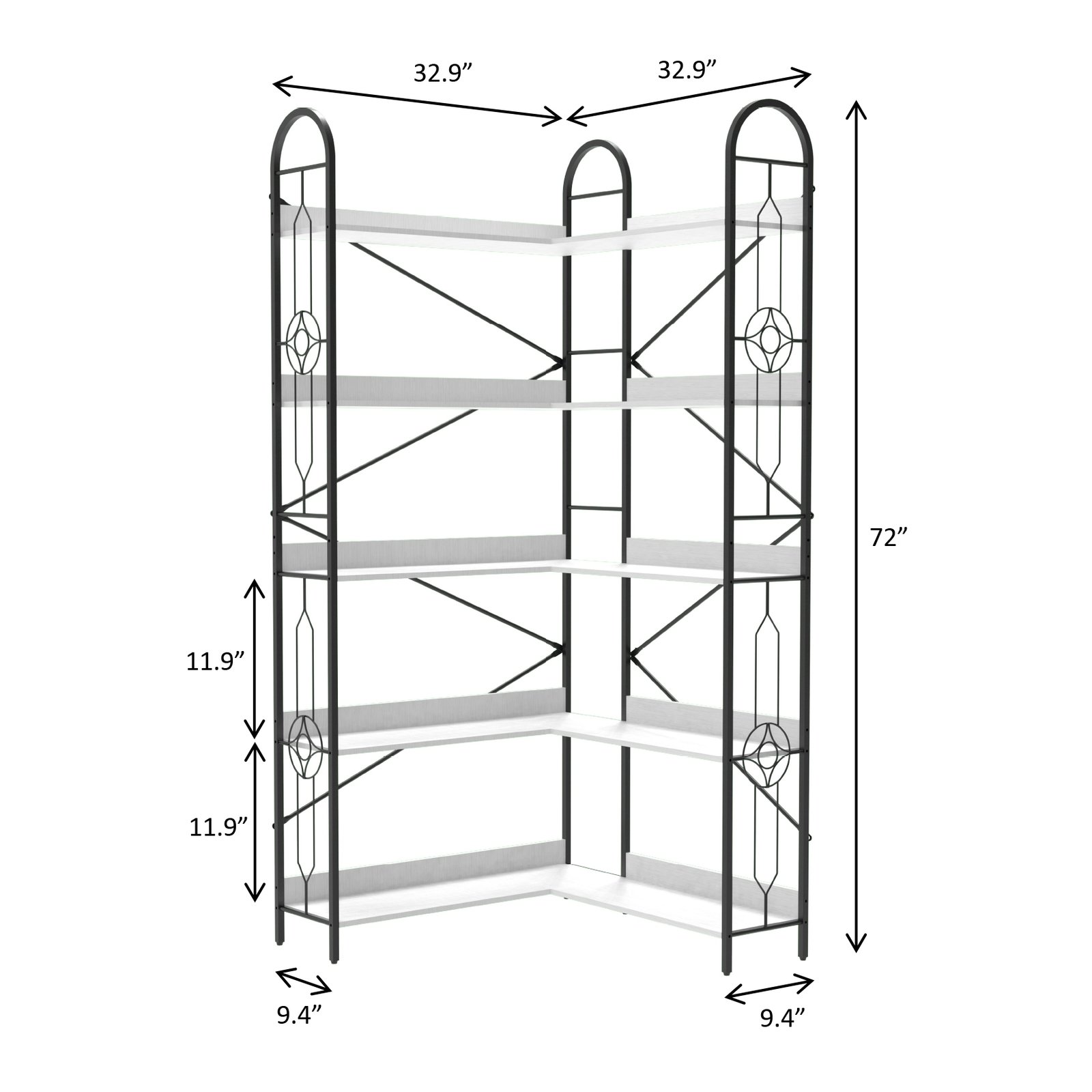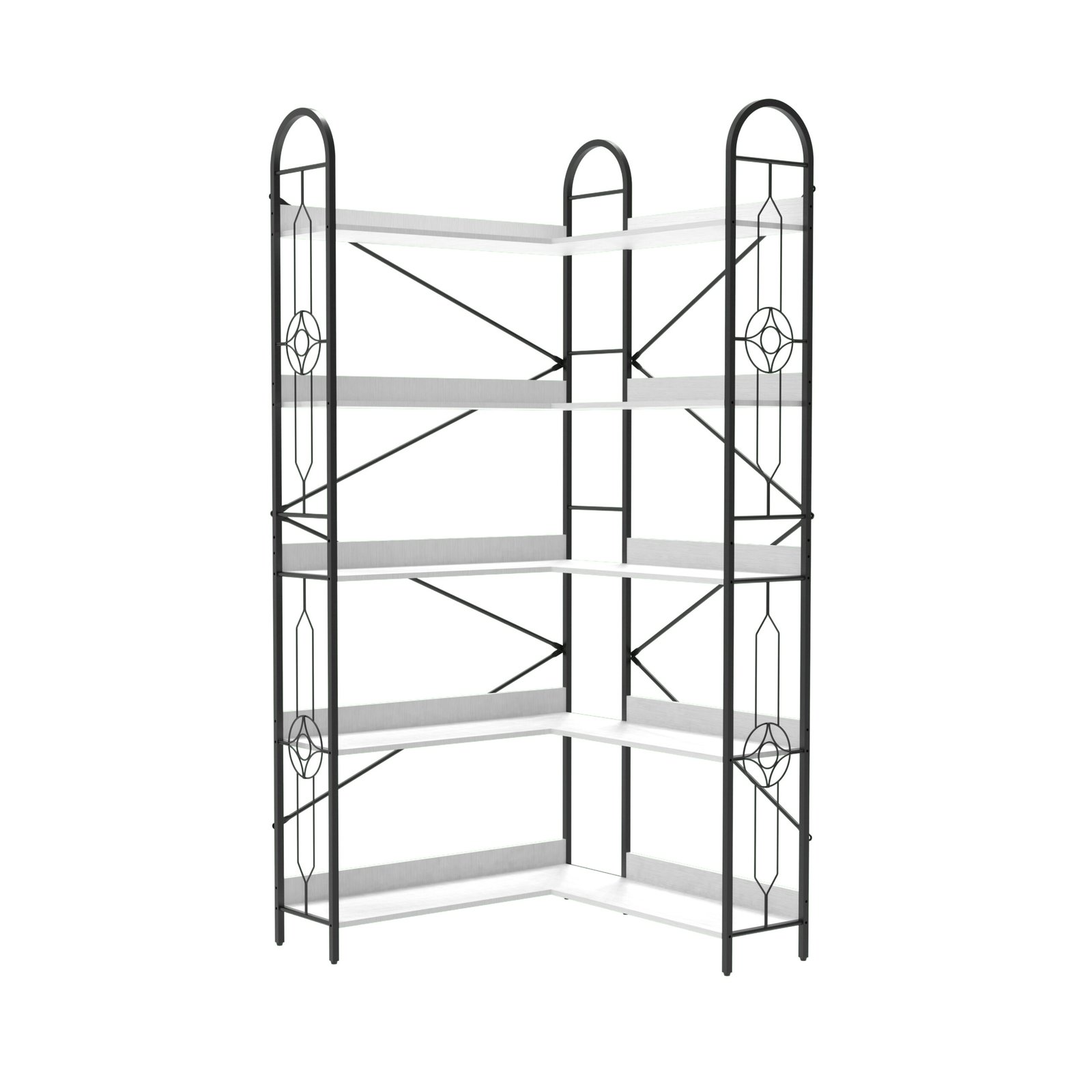 Product Name:5 Tier Corner Bookshelf, Modern Corner Bookcase, Large Open Shelf Bookcase,Display, Shelving, Tall Bookshelves Storage Display Rack for Bedroom, Living Room and Home Office, White