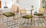Be the first to review “Dining Chairs Set of 2, Velvet Rattan Side Accent Chairs with Chrome Legs, Modern Mid Century Breuer Designed Chairs, Upholstered Dining Living Room Kitchen Chairs (Olive Green-2pcs)” Cancel reply