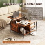 Farmhouse Lift Top Coffee Table with Storage – 31.5″ Adjustable Height Living Room Table, Multifunctional Center for Family with Hidden Compartment & 3 Shelves(110lbs Capacity, Easy to Clean)