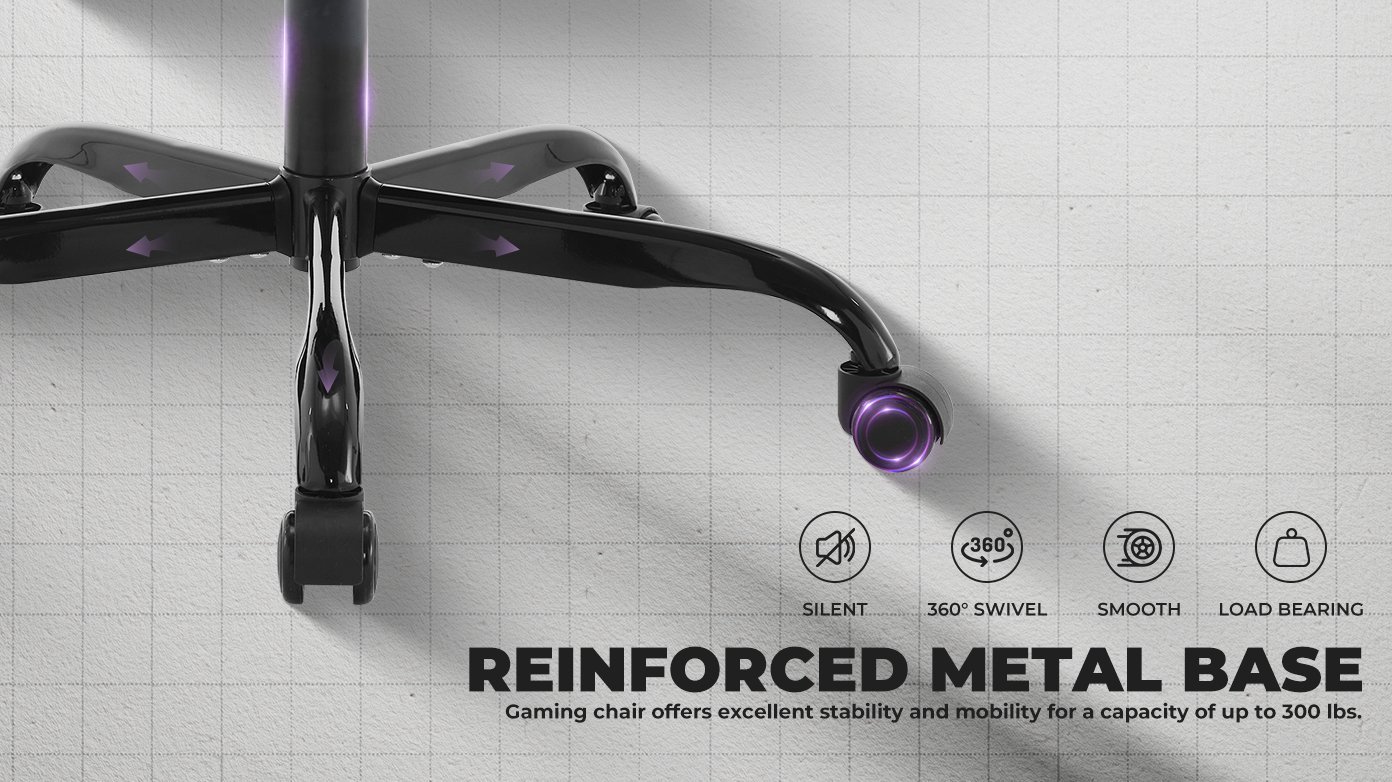 - Excellent Stability: The chair is equipped with a high-strength steel frame and a sturdy iron base to further enhance its overall durability and load-carrying capacity. The iron base can provide solid support, whether it is an intense game operation or long office hours. The chair has a maximum load-bearing capacity of up to 300 pounds, ensuring that users of all sizes can use it safely and comfortably, enjoying lasting stability and peace of mind