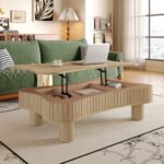 Product Name:Lift Top Coffee Table for Living Room 42″ – Fluted Panel Hidden Storage, Silent Hydraulic Lift, Curved Safety Corners, 5 Min Assembly (27″W x 13-18.9″H,Natural Wood)