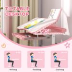 - 45° Tilt Tabletop: The spacious 31.5″ L x 19.7″ W tabletop can tilt from 0-45° via knobs to promote a healthier posture, reducing neck and back strain for your child during study sessions.