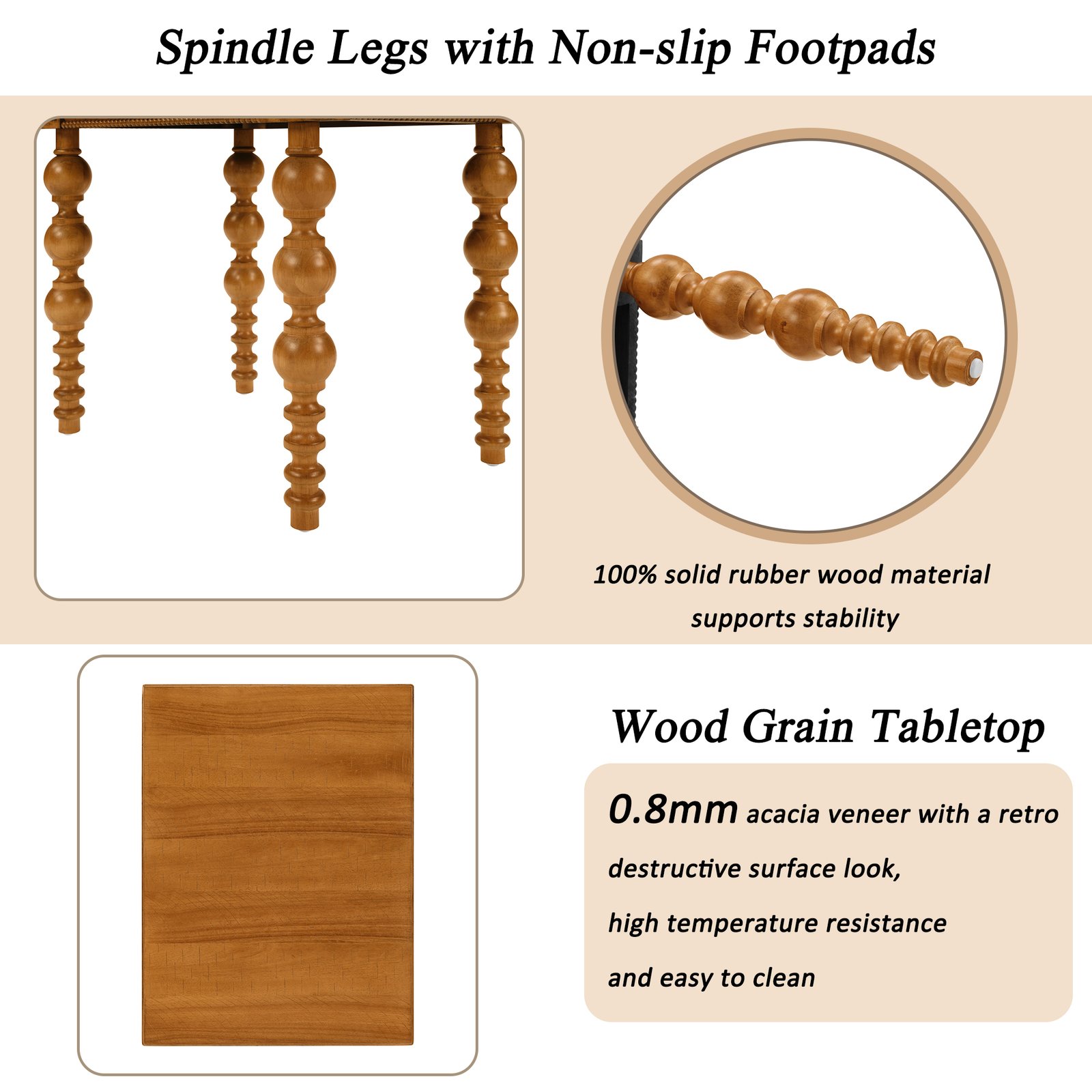 • Waterproof & Heat Resistant – The tabletop is made of MDF and 0.8mm acacia wood veneer, which is waterproof and high-temperature resistant and easy to clean。