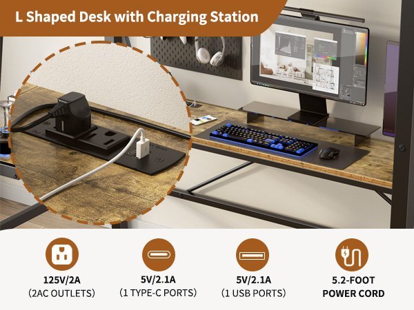 Twin Metal Loft Bed with L-Shaped Desk, Charging Station Loft Bed Frame Twin Size, Safety Guard & Ladder, No Box Spring Needed