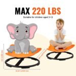 VEVOR Elephant Kids Swivel Chair, 220 LBS Capacity, 360° Spinning Chair, Autistic Kids Sensory Toy Chair with Non-Slip Metal Base, Toddler Sit and Spin Chair for Coordination Balance Focus Orange